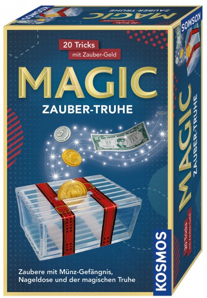 Wie kann die magische Truhe geöffnet werden? 20 zauberhafte Tricks mit Münzen und Zauber-Geldscheinen verblüffen das Publikum. Mit der magischen Truhe, den zusätzlichen Zauberutensilien und der farbigen Schritt-für-Schritt-Anleitung wird das Zaubern ganz einfach! Inhalt: Zauber-Truhe, silberne Münze, goldene Münze, Zauber-Geldscheine, Nageldose mit 5 Nägeln, Münz-Gefängnis und eine bebilderte Anleitung ACHTUNG! Nicht für Kinder unter 3 Jahren geeignet. Erstickungsgefahr, da kleine Teile verschluckt oder eingeatmet werden können.