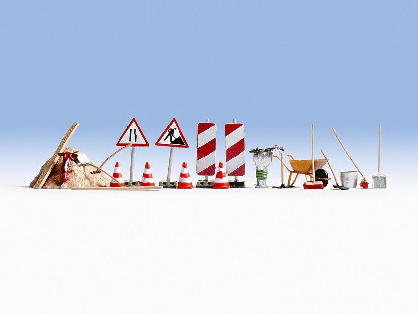 Wer wirklich Wert auf eine realistische Gestaltung von themenbezogenen Szenen legt, der findet im NOCH Sortiment eine Menge Ideen: vom Eiscafé zur Autowerksatt über Grabmäler bis hin zu Strandszenarien. Jedes Set enthält eine Vielzahl an handkoloriertem Zubehör zum jeweiligen Thema. Beleben Sie Ihre Modell-Landschaft mit den Zubehör-Sets von NOCH – denn oft sorgen gerade die kleinen Dinge für ganz große Wirkung! Mit dem Straßenbau-Zubehör von NOCH sorgen Sie für die passende Kulisse rund um die Straßen und Wege auf Ihrer Modellbahnanlage oder Diorama. Inhalt: Sandhügel, Presslufthammer, Warnschilder, Pylone, Baken, Stampfer, Hacke, Schubkarre, verschiedene Besen und Schaufeln, Eimer Achtung: Nicht geeignet für Kinder unter 14 Jahren. Benutzung unter Aufsicht von Erwachsenen.