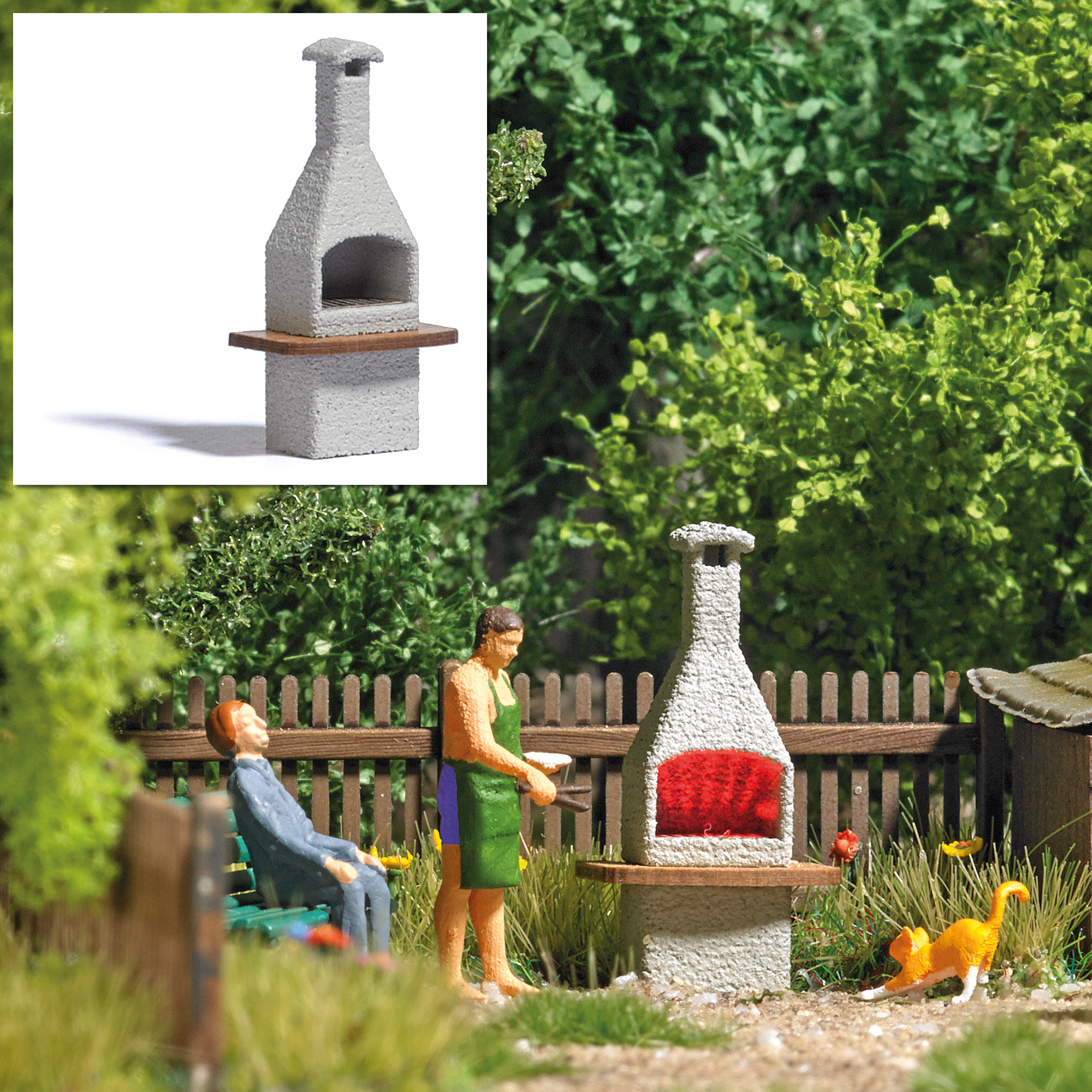 Gartengrill mit glimmender Grillglut. Realistische Steinoptik. Mit Grillrost und Ablagefläche. Zum Anschluss an 14 – 16 V Gleich- oder Wechselspannung. Größe: 12 x 7 mm, Höhe: 24 mm. Achtung: Nicht geeignet für Kinder unter 14 Jahren. Benutzung unter Aufsicht von Erwachsenen.