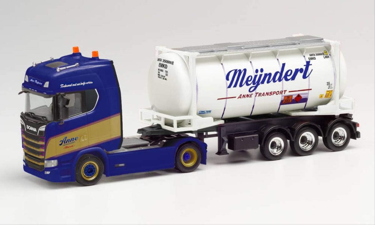 Neu in den Niederlanden sind die Fahrzeuge von Anne Mijndert unterwegs. Der wunderschön gestaltete Scania zieht ein Containerchassis, das mit einem mit Firmenbeschriftung gestalteten Swapcontainer beladen ist. Sammlerartikel – Kein Spielzeug! Achtung! Nicht für Kinder unter 14 Jahren geeignet.
