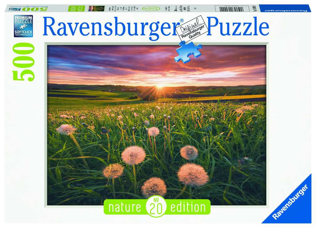 Pusteblumen im Sonnenuntergang, 500 Teile Puzzle-Größe: 49×36 cm ACHTUNG! Nicht geeignet für Kinder unter 3 Jahren. Verschluckbare Kleinteile. Erstickungsgefahr!