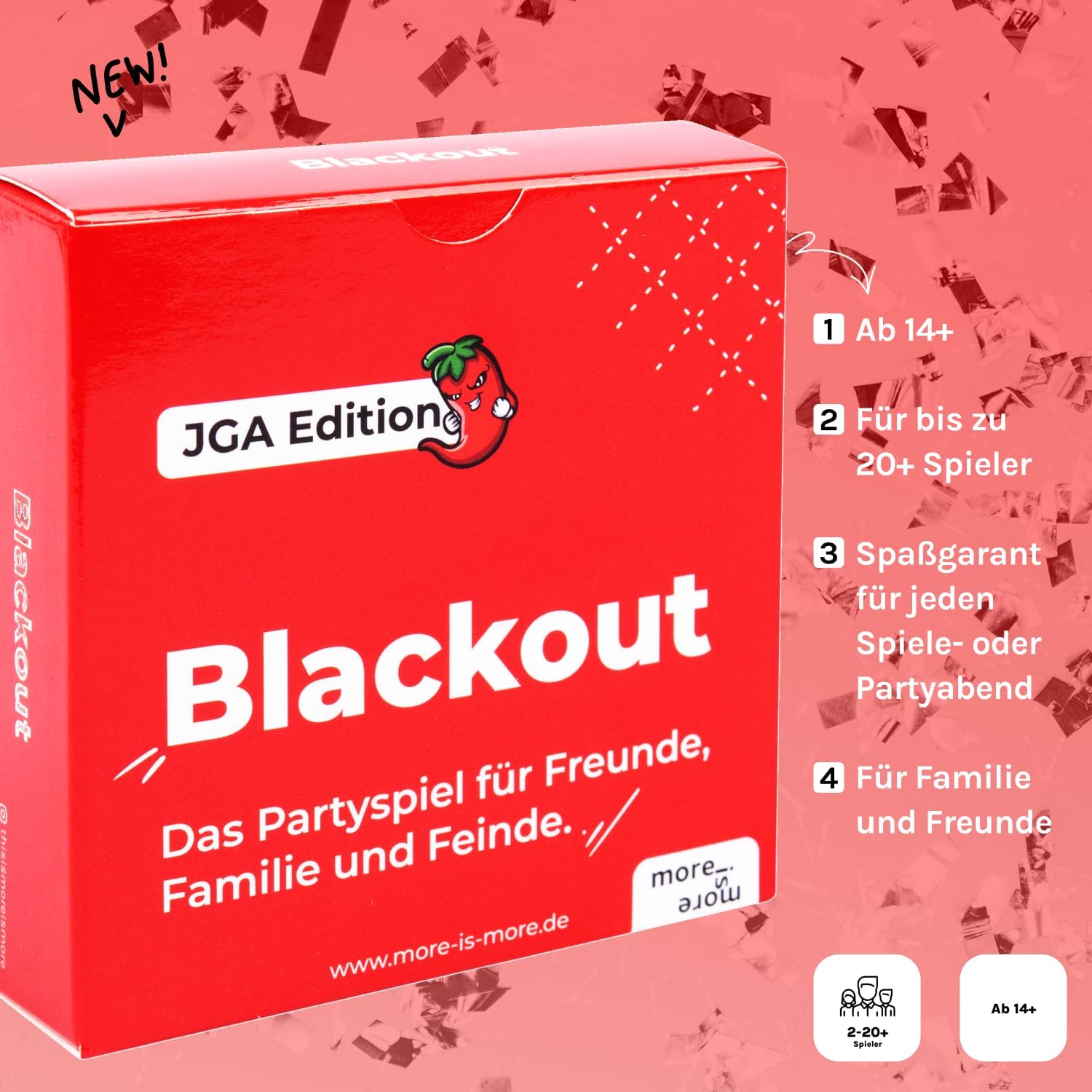 Das Original wurde erweitert um die JGA Edition – Blackout ist ein witziges Partyspiel für Freunde, Familie und Feinde. 55 Themenkarten und 55 Regeln sorgen für witzige Momente ?? Geschwindigkeit gefragt – wer findet zuerst einen Grund, nicht zur Arbeit zu gehen, mit nur einem Vokal?! ? Leicht verständliche Regeln – die Themenkarte gibt das Thema des Wortes vor, die Regelkarte die entsprechende Regel dazu. Wer zuerst ein richtiges Wort findet, hat gewonnen. ?? Egal ob Weihnachtsfeier, Geburtstagsparty, Silvester, Abschlussfeier, Junggesellenabschied, Vorglühen oder Festival – die lustigen Karten sorgen überall für Spaß und Action. ?? Ob zu zweit oder in der großen Gruppe – Blackout sorgt für einen witzigen Spieleabend mit viel Gelächter